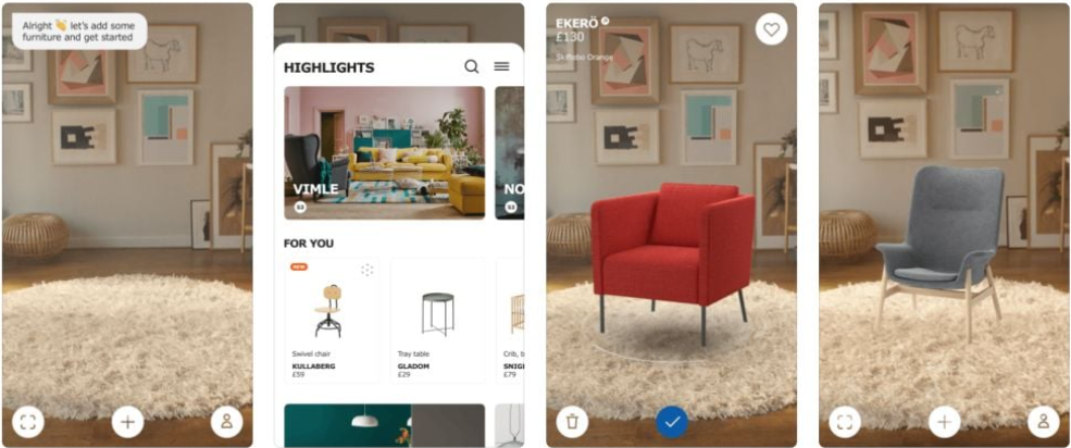 IKEA: The IKEA Place app allows customers to visualize furniture in their homes with 3D AR models, boosting purchase confidence.