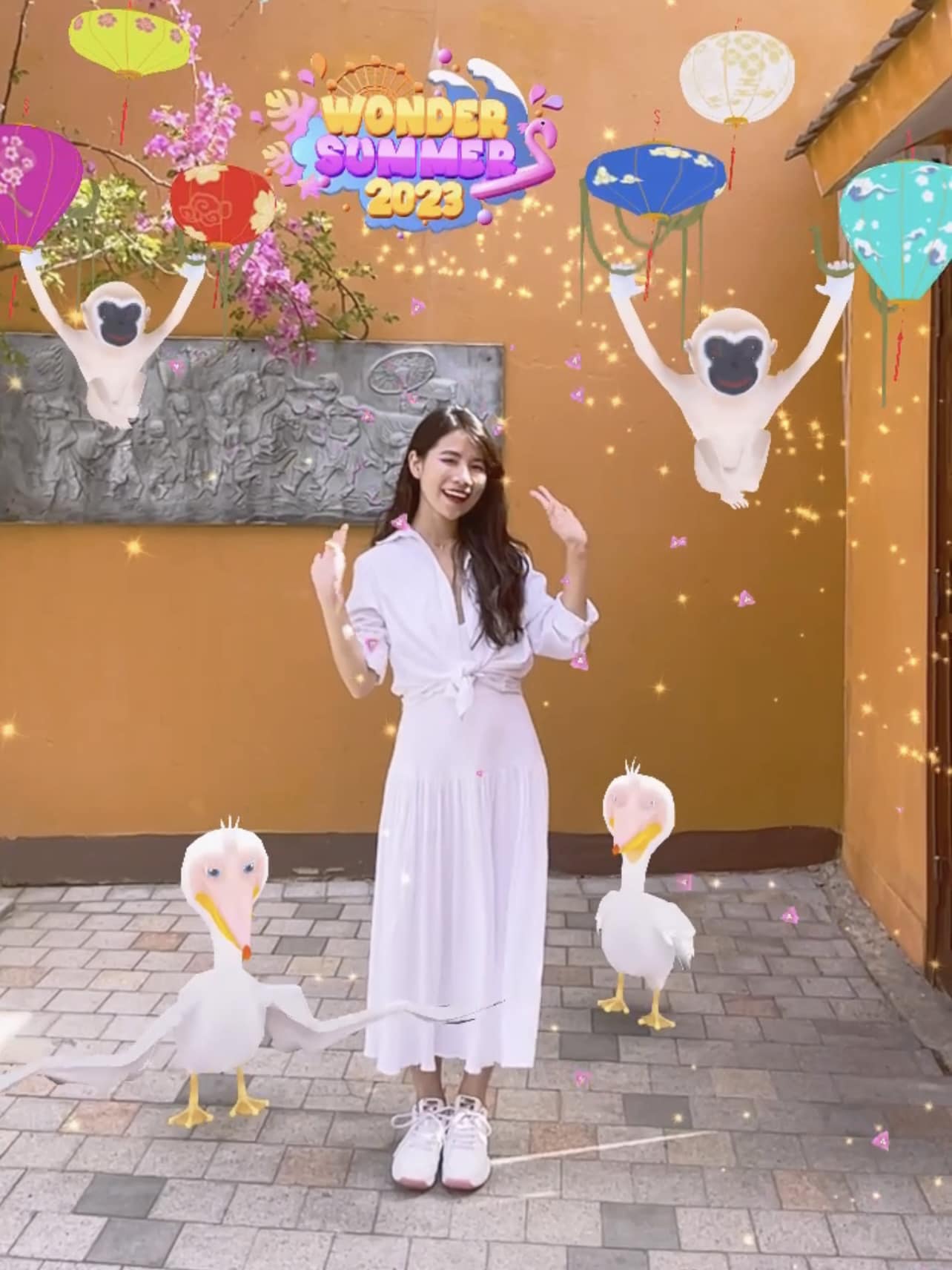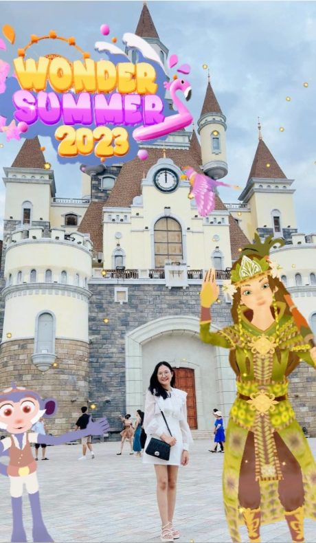 In VinWonders' Wonder Summer campaign, the AR Filter stands out as a highlight within the campaign's activities. Modern AR World Tracking technology has been employed to create a unique check-in experience for visitors to VinWonders, in addition to establishing a strong connection between visitors and the characters within the VinWonders amusement park.