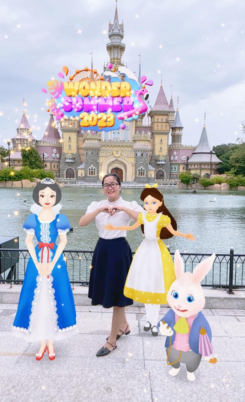 At each VinWonders branch, including VinWonders Phu Quoc, Nha Trang, Hoi An, and Times City, different characters such as Princess Tata, Monta Monkey, Tuka the Parrot, Alice, and Snow White will appear in the filters. Additionally, even customers who haven't visited VinWonders can still check-in anywhere with the specially designed VinWonders filter.
