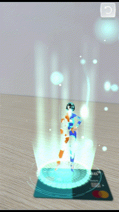 After being granted camera access, depending on the type of card the customer is using, an augmented reality (AR) image of the same type of card will appear on the screen. Users will be guided to scan a flat surface to anchor the AR model in place.