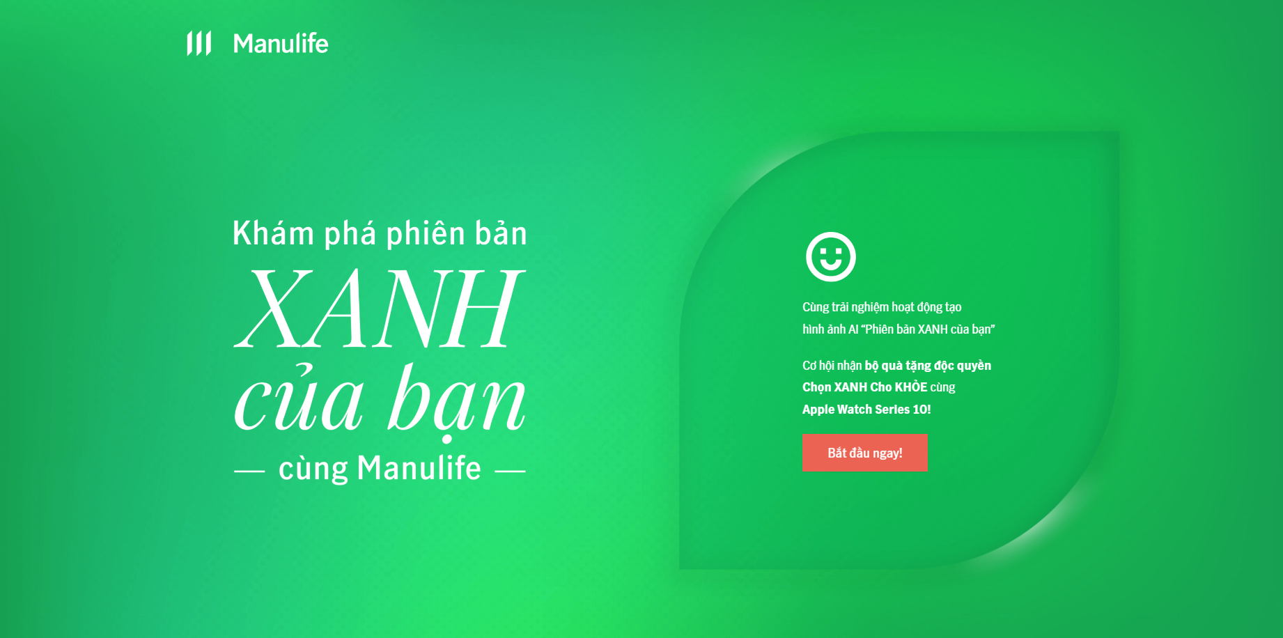 Một khi Manulife đưa ra thông điệp “Chọn Xanh Cho Khỏe” – hướng tới lối sống xanh, bền vững và sức khỏe – họ muốn người dùng không chỉ nghe mà còn “thấy chính mình” trong thông điệp đó. Marvy được giao nhiệm vụ biến thông điệp này thành trải nghiệm số, sử dụng Gen AI Image để tạo ra “Phiên bản Xanh của bạn” — một tiếng gọi cá nhân hóa giữa người dùng và thương hiệu.