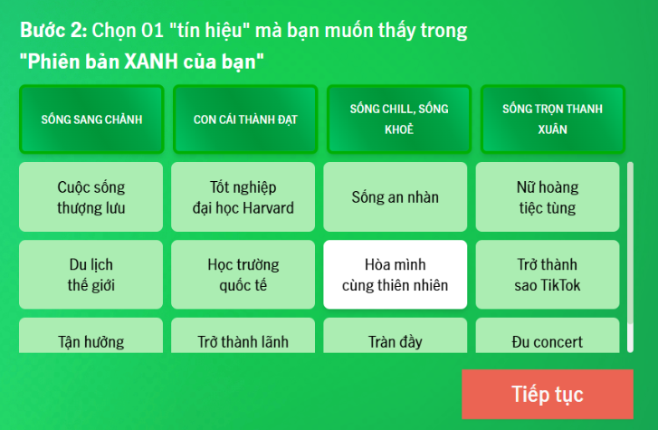 Marvy xây dựng giao diện tải ảnh + lựa chọn tín hiệu xanh (sống sang chảnh, con cái thành đạt, sống khỏe chill, sống thanh xuân).